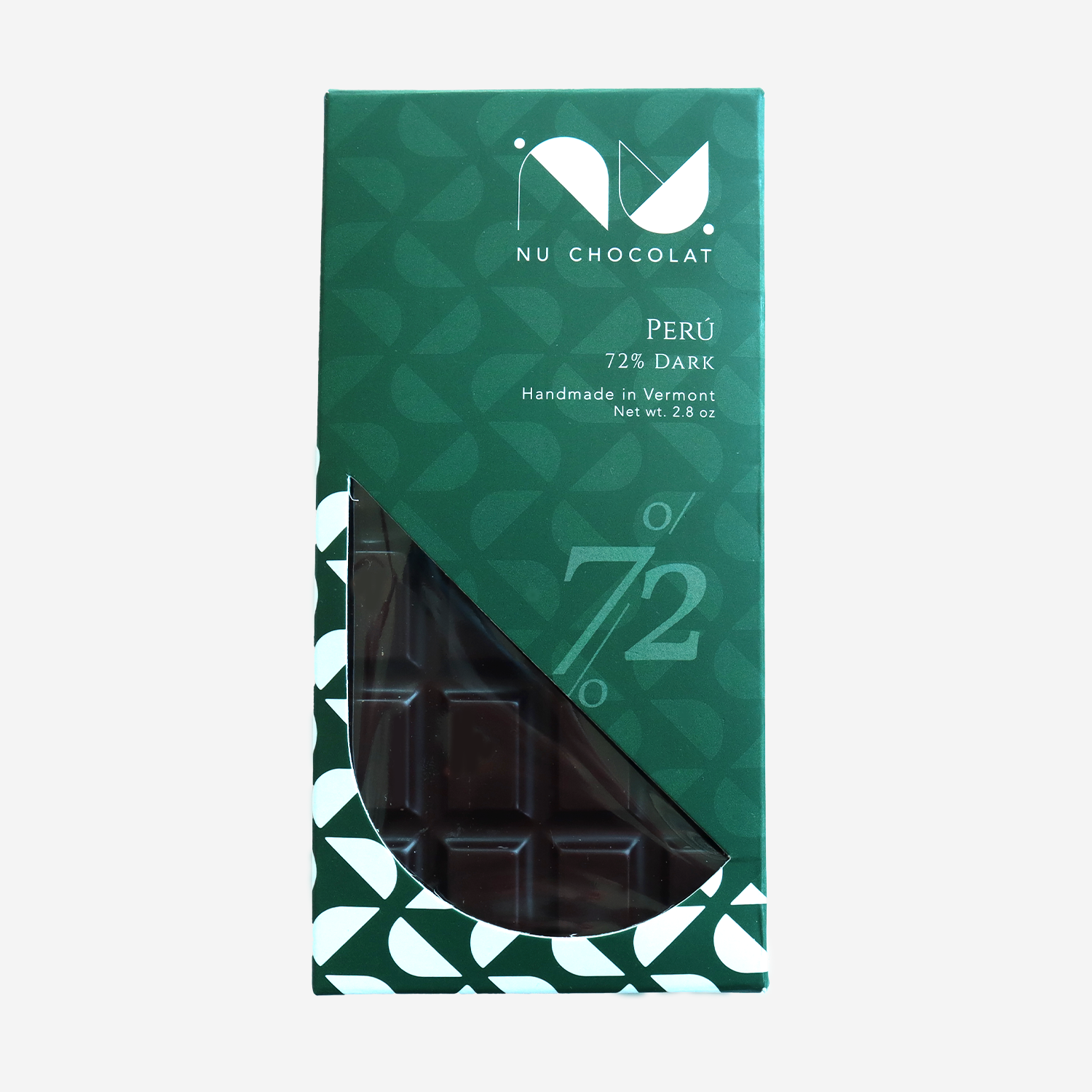 Single-origin 72% dark chocolate from Peru. Smooth and balanced, melting away into a tangy, dark fruit and berry flavor!